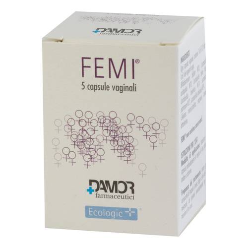 FEMIDescrizione È un dispositivo medico che contribuisce a ricreare condizioni favorevoli al ripristino del microambiente vaginale inibendo la crescita di batteri e funghi patogeni e prevenendo le infezioni vaginali ricorrenti come vaginosi e vaginiti. Modalità d'uso Introdurre una capsula profondamente in vagina la sera prima di andare a dormire. In caso di secchezza vaginale, bagnare la capsula con acqua prima di introdurre in vagina. Cinque giorni consecutivi di terapia al mese dopo la fine del ciclo mestruale, da ripetersi eventualmente per un massimo di tre mesi. Composizione Ogni capsula vaginale contiene 1,65x10 9 ba...